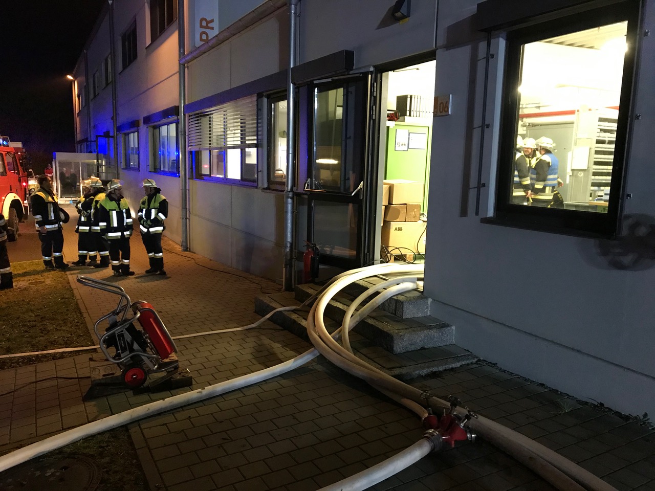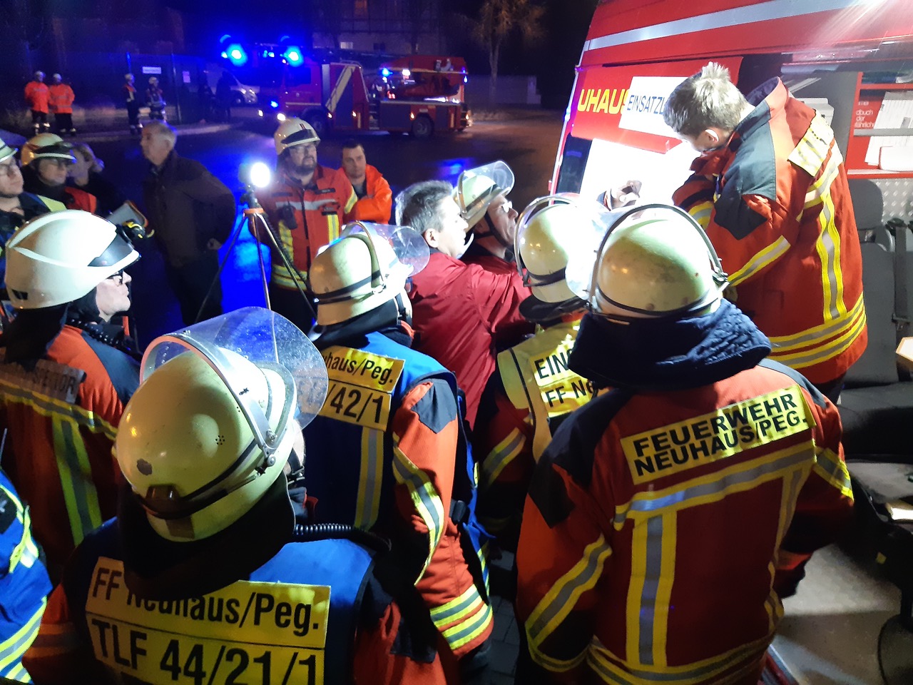 Am Dienstag den 07.01.2020 gegen 18.30 Uhr geriet in dem Papier verarbeitenden Betrieb eine Maschine zur Herstellung von Bechern in Brand, der durch Betriebsangehörige mittels Feuerlöscher unverzüglich gelöscht werden konnte. Gleichzeitig löste die Brandmeldeanlage aus, die die direkte Alarmierung der Feuerwehr Neuhaus zur Folge hatte. Beim Eintreffen der ersten Kräfte stellte sich heraus, dass der betroffene Brandabschnitt (2500 Quadratmeter) massiv verraucht war und mehrere Personen den Qualm eingeatmet hatten. Des Weiteren waren 2 Brandabschnitte (5000 Quadratmeter) leicht verraucht. Beides bedingte eine Ausweitung der Einsatzmaßnahmen. Bei der Feuerwehr wurde auf das Stichwort „Brand Industriegebäude“ erhöht und die Einheiten aus Krottensee, Mosenberg, Höfen, Velden, Auerbach und Diepersdorf nachalarmiert. Atemschutzkräfte wurden ebenso benötigt wie Hochleistungslüfter, um das Gebäude rauchfrei zu bekommen. Der konzentrierte Einsatz der Belüftungsgeräte von den eingesetzten Wehren war so erfolgreich, dass der mobile Großraumlüfter aus Diepersdorf nicht mehr zum Einsatz kam. Einsatzleiter Thomas Kulacz koordinierte zeitweise mit den Kräften der Kreisbrandinspektion bis zu 110 freiwillige Helfer.