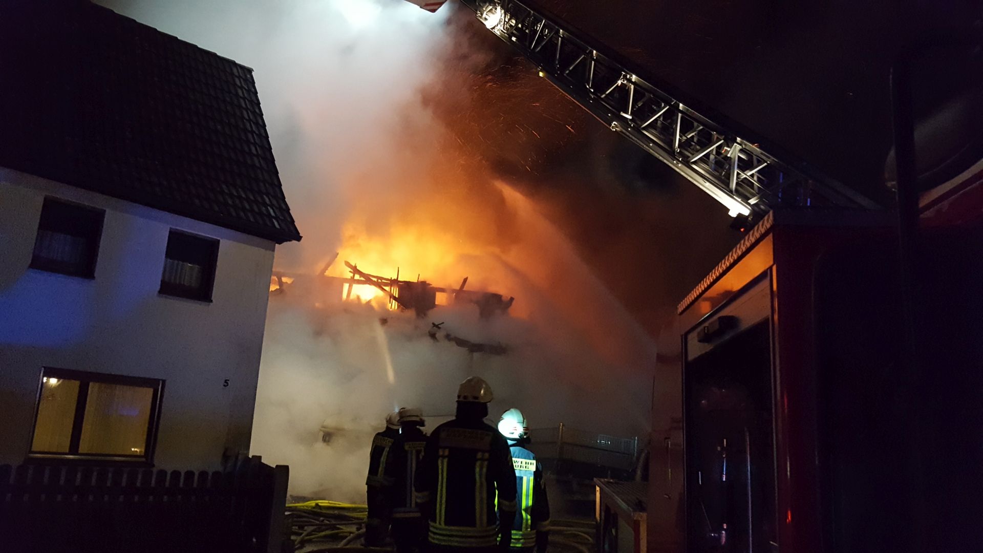 Aufgrund der engen Bebauung galt es zunächst zwingend auch die Nebengebäude zu schützen. Die angrenzende Wohnbebauung mit Häusern, Kinderkrippe und Kirche war durch die Hitzestrahlung und den Funkenflug stark gefährdet. Alle weiter alarmierten Feuerwehren trafen Schlag auf Schlag an der Einsatzstelle ein und übernahmen die ihnen zugewiesenen Aufgaben. Nur durch das schnelle und professionelle Eingreifen aller Einsatzkräfte konnte ein übergreifen der Flammen verhindert werden.
