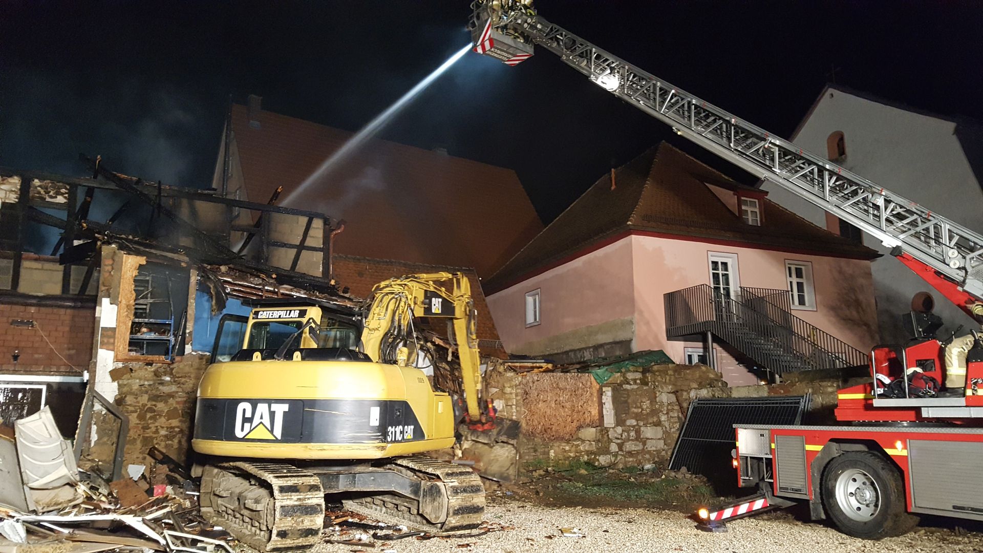 Als der Brand unter Kontrolle war, wurde von der Gemeinde ein Abbruchunternehmen beauftragt um die Einsturz gefährdeten Außenwände sofort abzureißen.