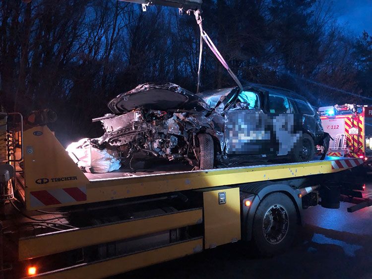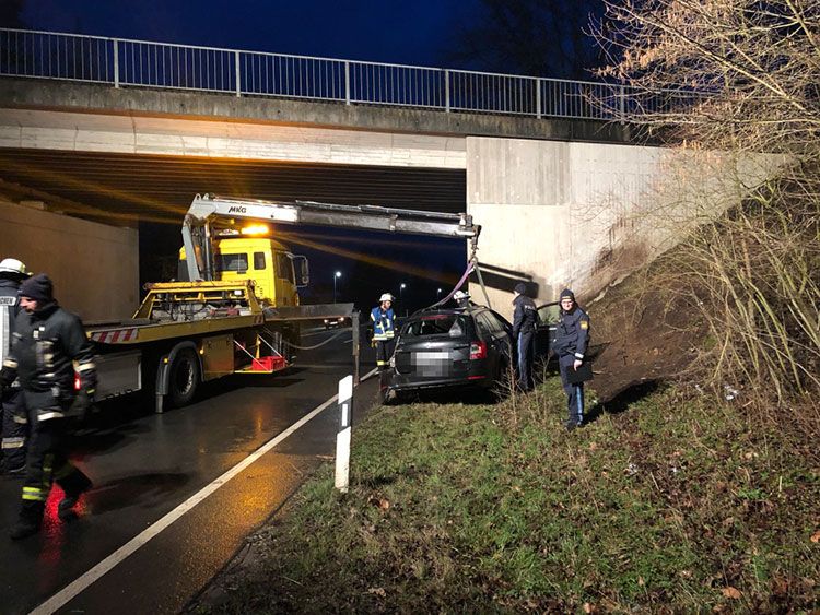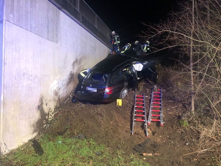 Speikern (DB2) - Am frühen Donnerstagmorgen des 27.02.2020 wurde gegen 4.14 Uhr die Feuerwehr Speikern zusammen mit dem Rettungsdienst zu einem Unfall auf der St2236 zwischen Speikern und B14 alarmiert. Dort soll ein PKW gegen die Brücke gefahren sein. Ein Rettungswagen, der sich zufällig in der Nähe befand, traf unmittelbar nach Alarmierung an der Einsatzstelle ein und erhöhte aufgrund des vorgefundenen Schadensbildes sofort die Alarmstufe (THL 3).