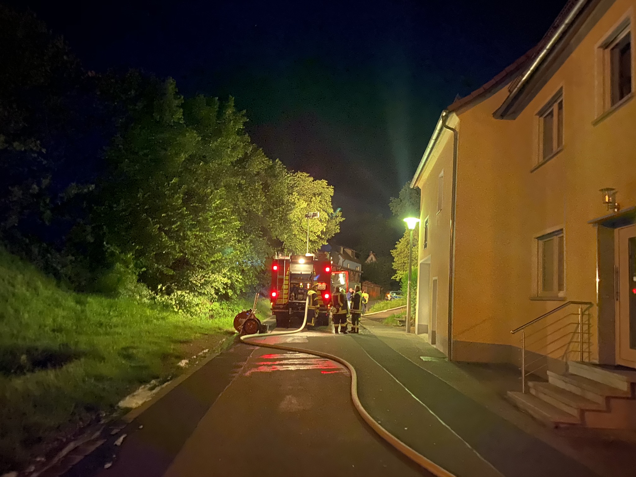 Gegen 1:30 Uhr war der Einsatz für uns vorbei und wir konnten wieder in unser Gerätehaus einrücken. Gemeinsam wurde die Einsatzbereitschaft wieder hergestellt. Dazu gehört das Auffüllen der Fahrzeuge (Schläuche, etc), Neuausrüsten der Atemschutzgeräte, sowie die Reinigung von im Einsatz verwendeten Einsatzmitteln.