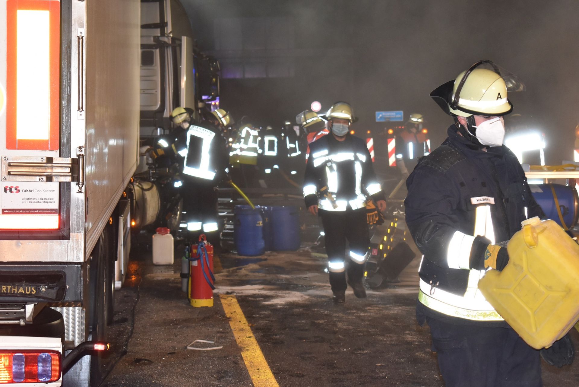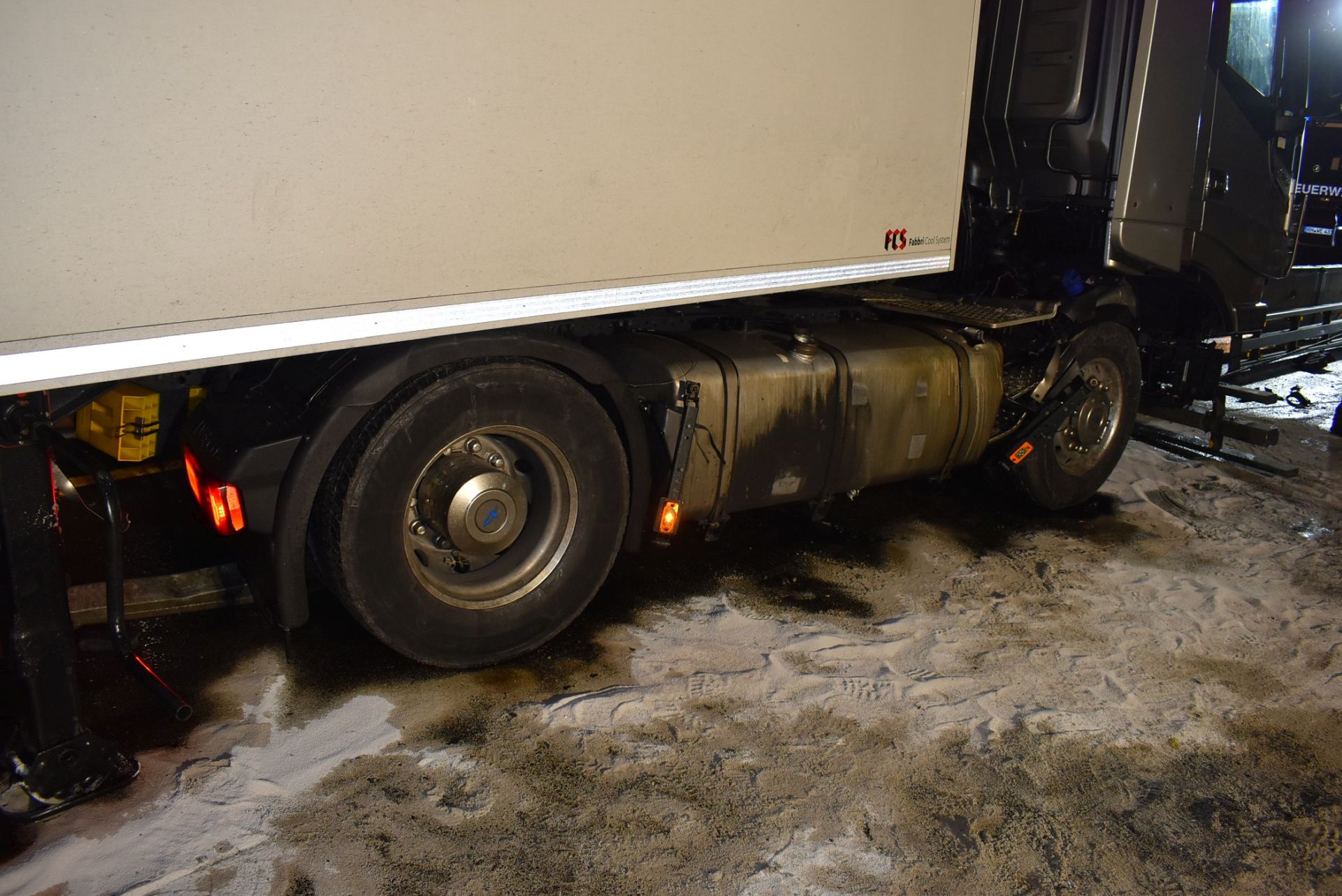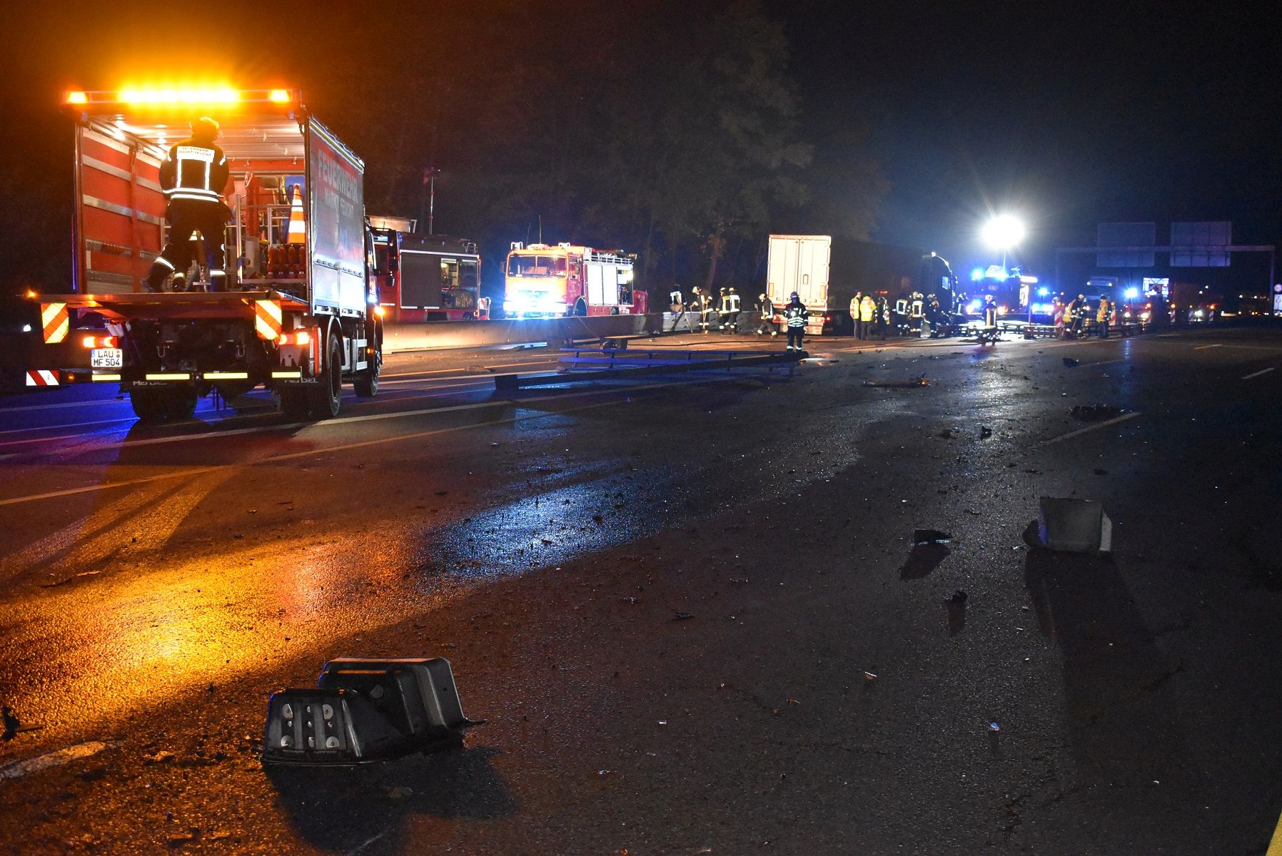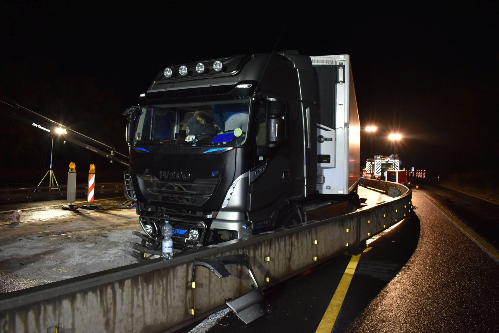 Nach Polizeiangaben durchbrach ein LKW ohne Fremdbeteiligung an der Fahrbahnüberleitung den Fahrbahnteiler, wodurch sein Kraftstofftank aufriss und sich eine beträchtliche Menge Diesel über die Fahrbahn ergoss. Der LKW schob dabei den stählernen Fahrbahnteiler wie eine Ziehharmonika zusammen und vor sich her und blieb erst stehen, als er auch noch die schwere Betonfahrbahnteilung um einige Meter auf die Gegenfahrbahn versetzt hatte. Der Fahrer konnte sein mit Obst beladenes Fahrzeug selbständig verlassen.