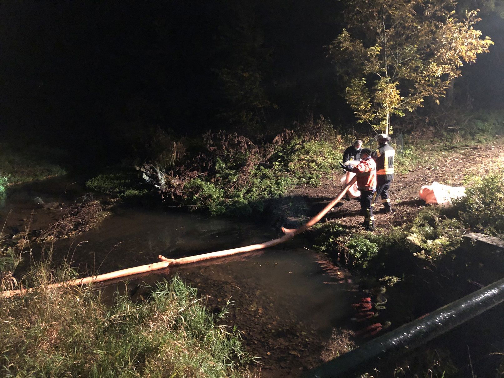Die Wehren sicherten die Einsatzselle ab, leuchteten großflächig aus, stellten den Brandschutz sicher, streuten den auslaufenden Diesel großflächig über alle Fahrspuren ab und pumpten den noch in den Tanks vorhandenen Diesel in Fässer um. Desweiteren wurde ein nahegelegener Bach mit einer Ölsperre geschützt und ein Überlauf mithilfe eines pneumatischen Rohrdichtkissens des Feuchter Rüstwagens abgedichtet. Eine weitere Ölsperre wurde in Zusammenarbeit der Feuerwehren im Ortsgebiet Röthenbach eingebracht.
