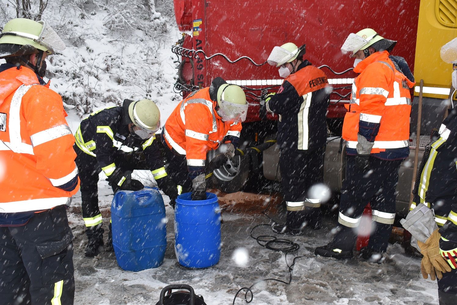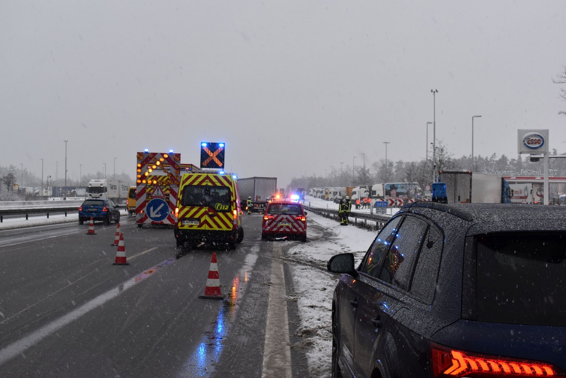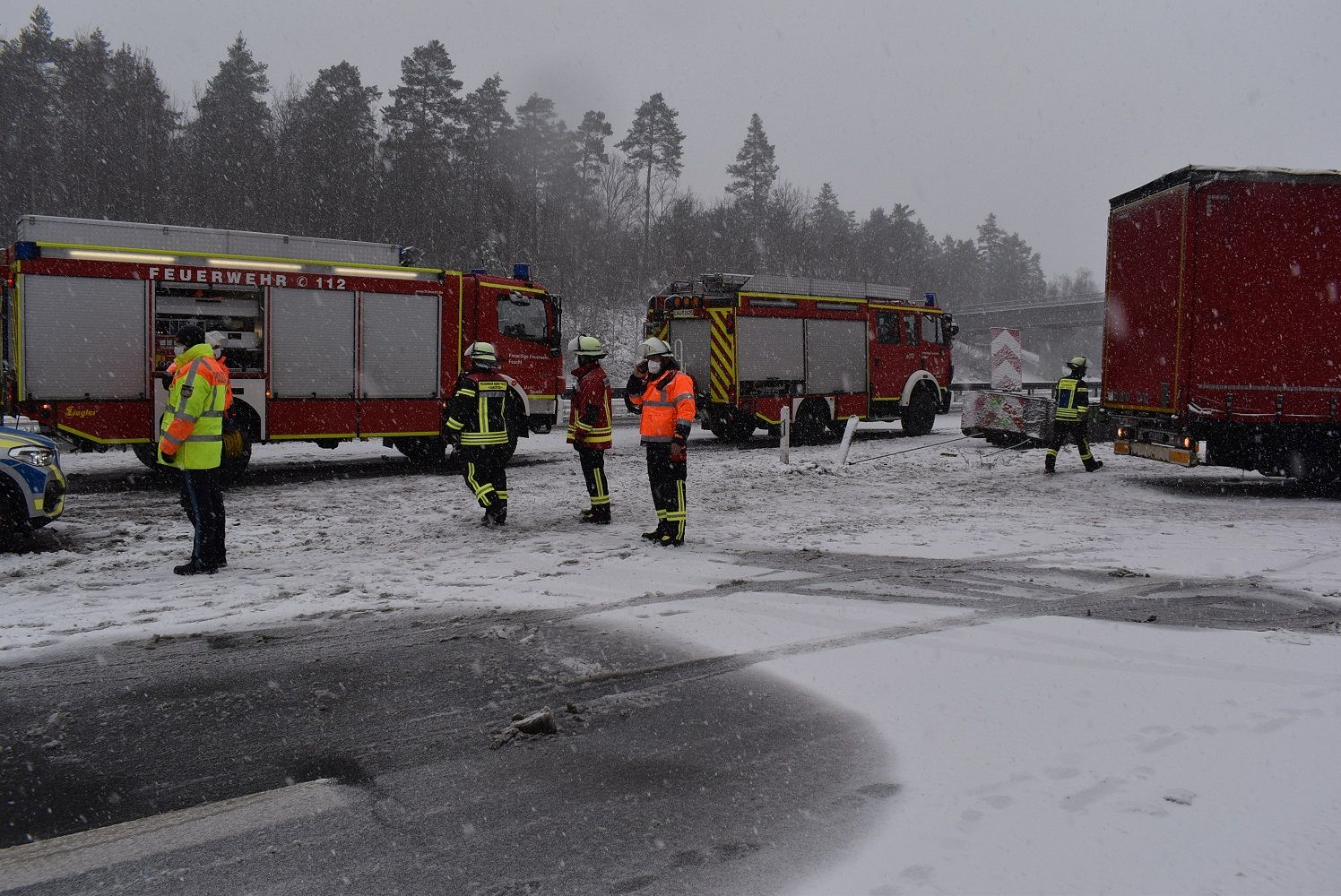 Aufgrund des Meldebilds und der längeren Anfahrt wurden die Feuerwehr Wendelstein hinzu alarmiert. Beim Eintreffen der Feuerwehr Feucht befanden sich ein LKW und ein Kleintranporter auf der mittleren und rechten Fahrspur. In Absprache mit dem Einheitsführer aus Wendelstein übernahm die Feuerwehr Feucht aufgrund ihrer Zuständigkeit die Einsatzstelle. Die Feuerwehr erstellte die Verkehrsabsicherung, sicherte gegen Brandgefahr und nahm Betriebsstoffe auf. Auch diese Einsatzstelle konnte nach gut 1,5 Stunden verlassen werden. Zeitgleich beendeten auch die Kollegen vom ersten Einsatz auf der A6 diesen und kehrten zum Standort zurück. Das Reinigen der Fahrzeuge von Salz und Schneematsch dauerte noch bis in die Abendstunden, sodass die Einsatzkräfte nach insgesamt 5 Stunden wieder nach Hause zurückkehren konnten.