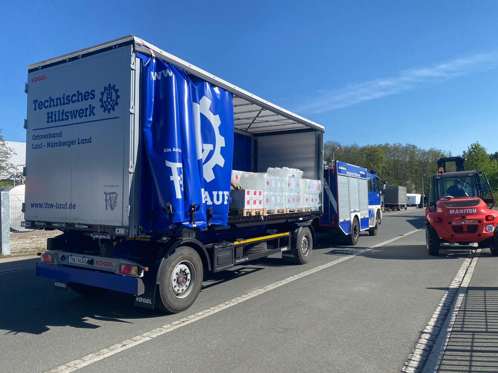Verschiedene THW-Einheiten übernehmen den logistischen Part zur Abholung im bayerischen Zentrallager und verteilen diese dann in die einzelnen Landkreise und kreisfreien Städte.