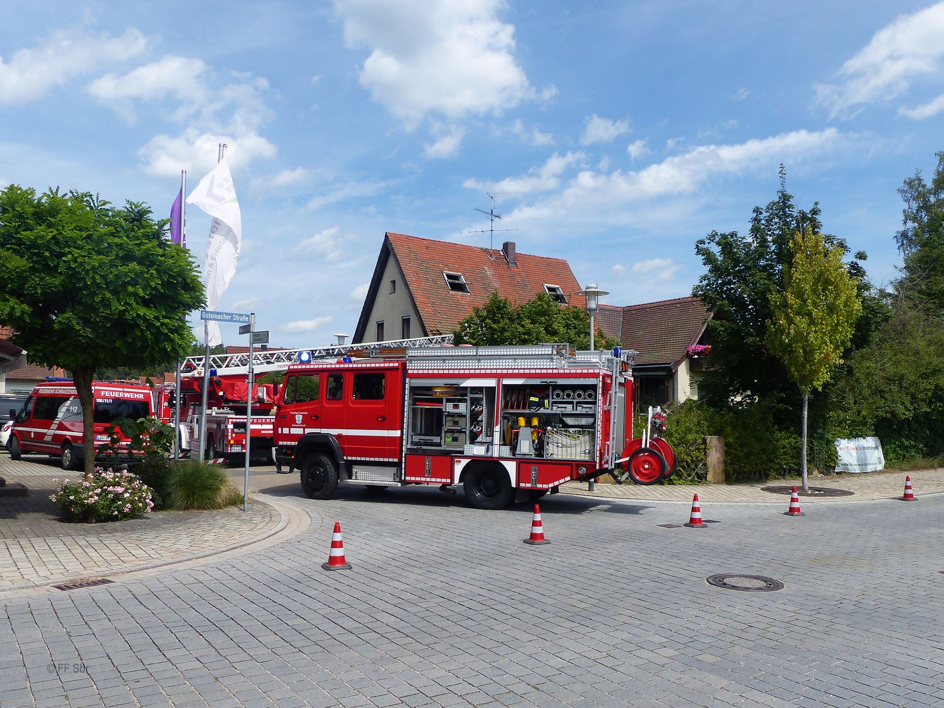 Am Donnerstag, 12.08.2021, wurde die Freiwillige Feuerwehr Schwarzenbruck um 12:53 Uhr über Funkmeldeempfänger und Sirene zu einem Dachstuhlbrand in die Nähe des Plärrers gerufen.
