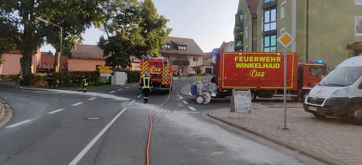 In der Reicherzaunstraße in Winkelhaid war erneut eine Dieselspur im Kurvenbereich vorzufinden. Diese hatte eine Länge von 200m und war ebenfalls 0,5m breit. Die Kräfte der Feuerwehr Winkelhaid waren mit dem Beseitigen der Dieselspur beschäftigt als um 07:42 Uhr erneut die ILS Nürnberg einen Einsatz für die Feuerwehr Winkelhaid hatte.