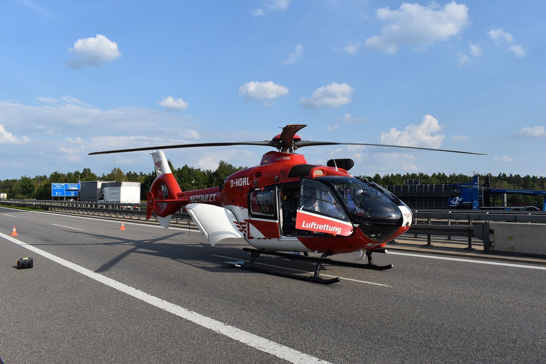 - Rettungsdienst mit ELRD, mehrere NEF und RTW, Rettungshubschrauber