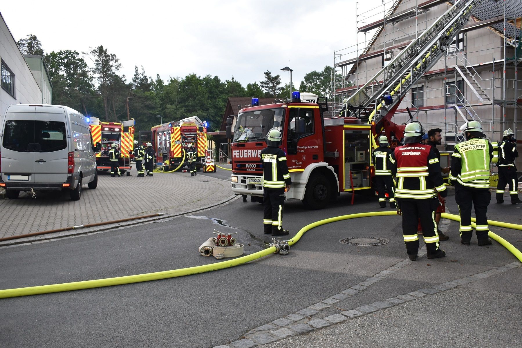 Feucht (DB 3) - Am 31. Mai wurde die Freiwillige Feuerwehr Markt Feucht um 17:50 Uhr zu einem Dachstuhlbrand in den Gugelhammerweg alarmiert.