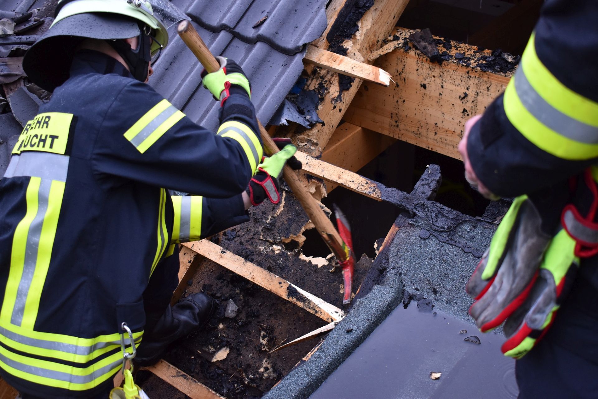 Durch gezielte Löschmaßnahmen aus dem Drehleiterkorb und im Innenangriff konnte das Feuer innerhalb kürzester Zeit unter Kontrolle gebracht und ein Durchbrennen des Dachstuhles verhindert werden.