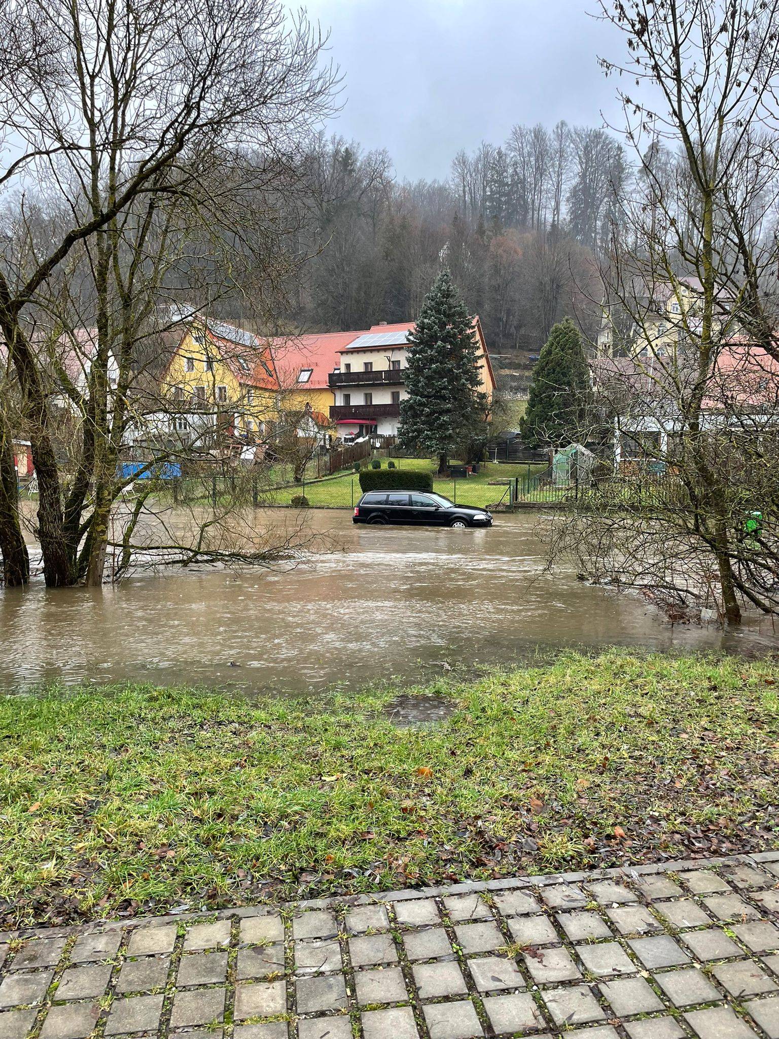 Aber auch die großen Regenmengen sorgten für einige Einsätze während der Feiertage. Die gesättigten Böden konnten das viele Wasser nicht mehr aufnehmen und so suchte es sich seinen Weg auf Verkehrswege und in Keller. Auch die Pegnitz trat in mehreren Bereichen über die Ufer.