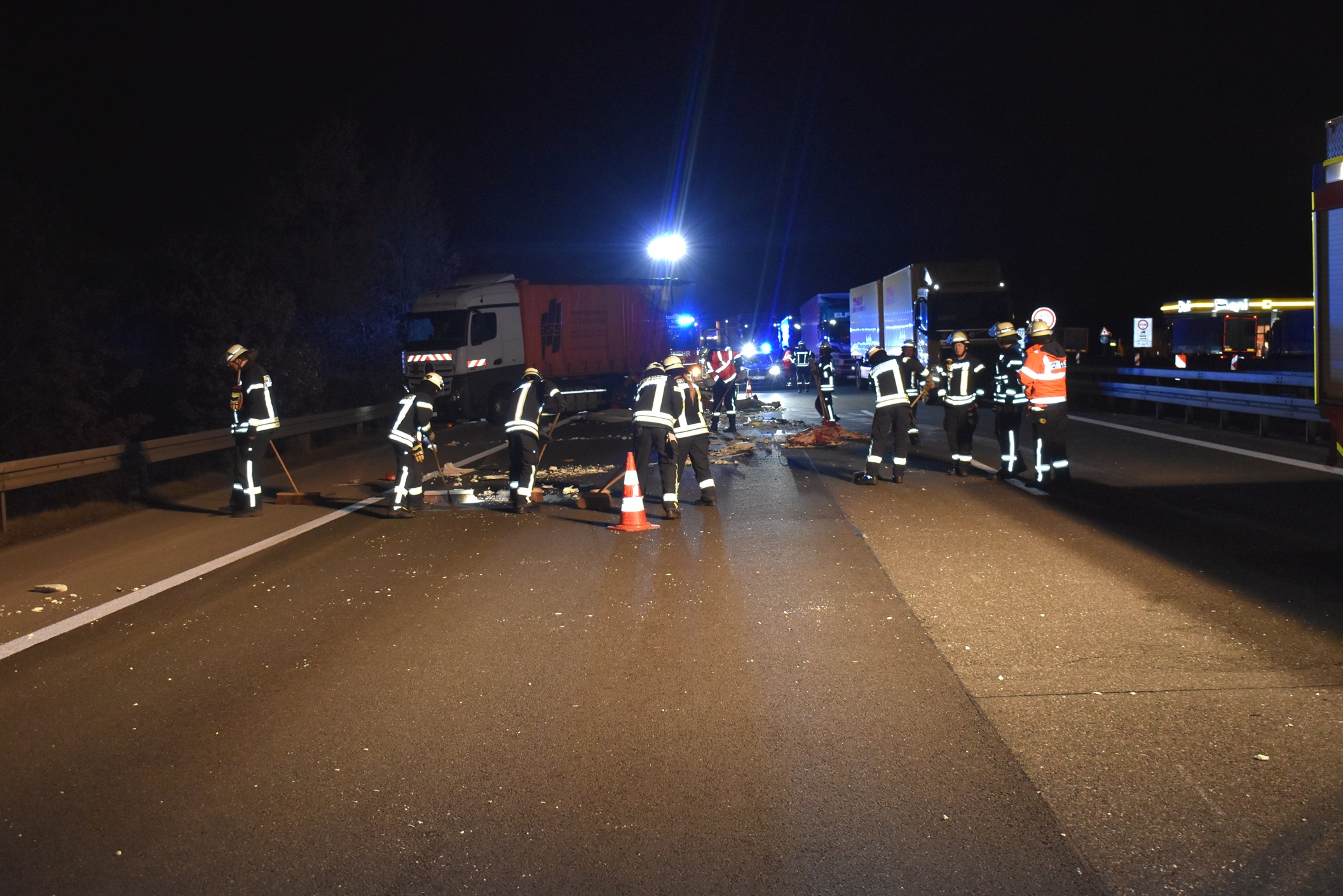 Während die Einsatzkräfte der Feuerwehr nach zweieinhalb Stunden wieder einrücken konnten, blieb die Fahrbahn noch bis in die Mittagsstunden gesperrt.