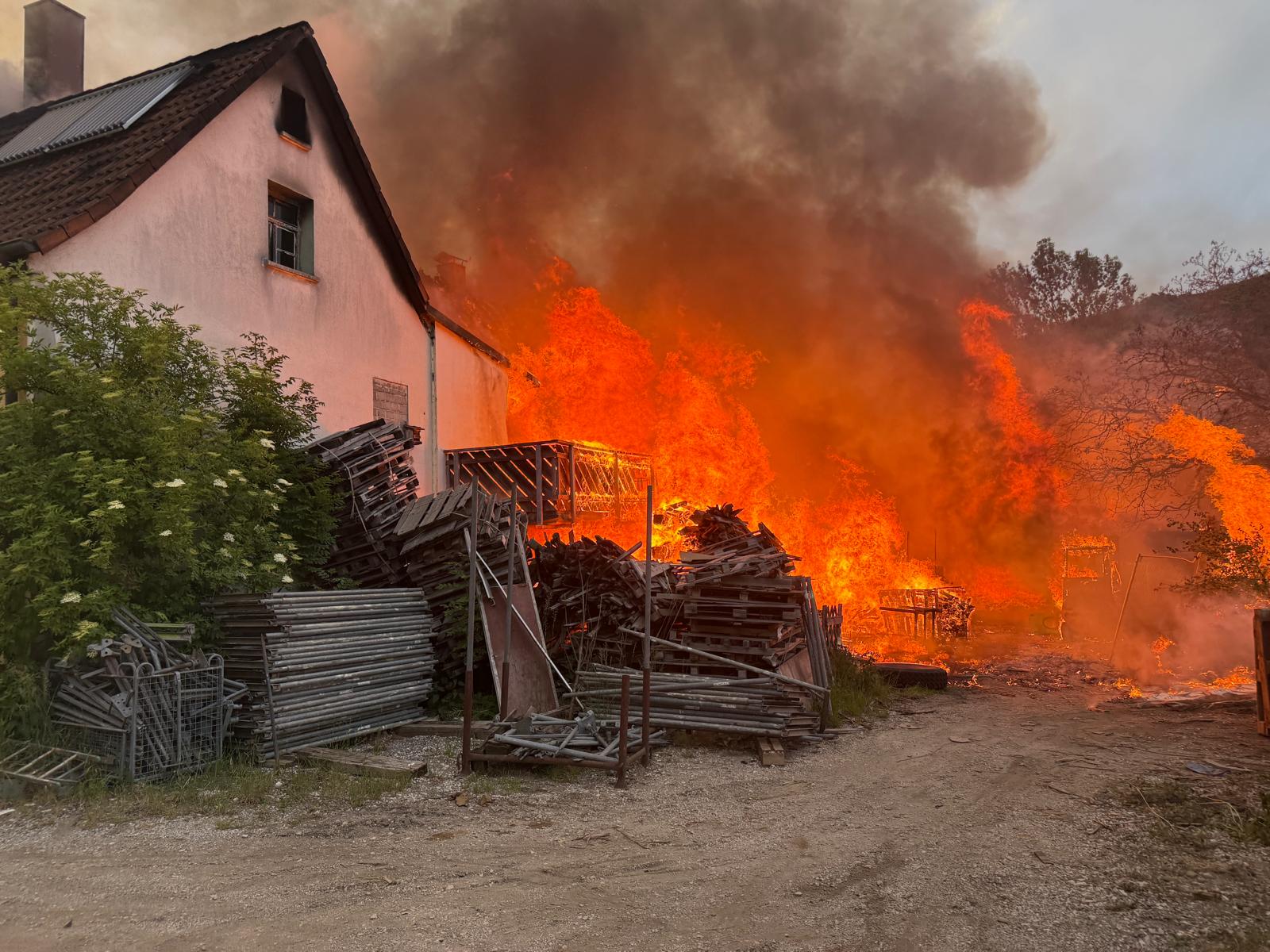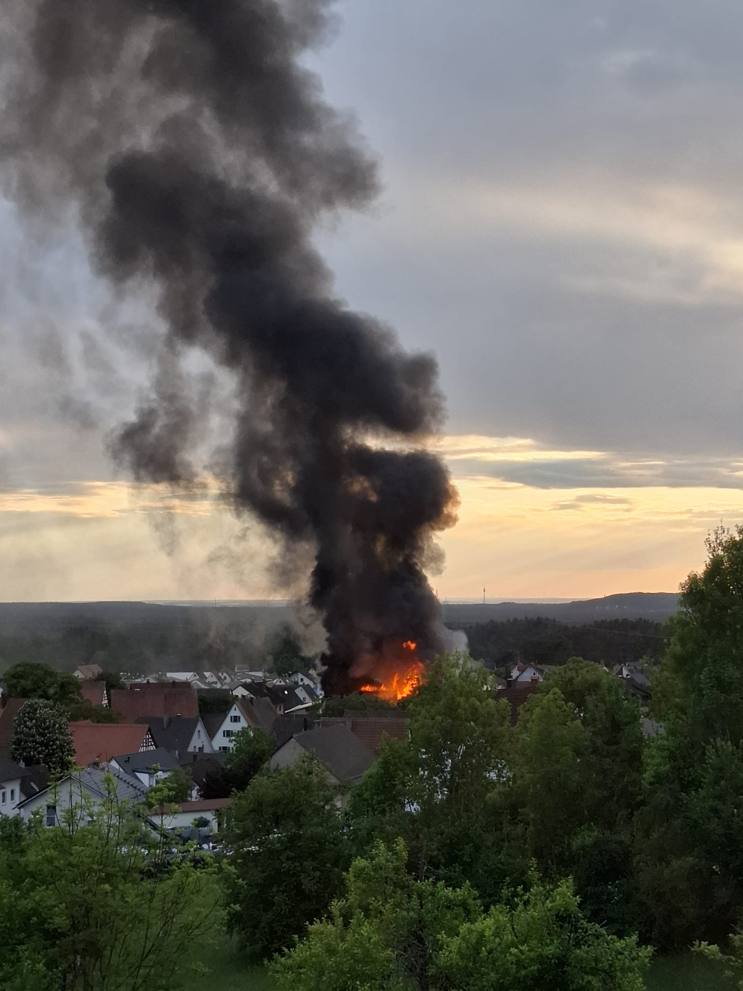 Weißenbrunn (DB 3) - Zu einem Großeinsatz rückten am Abend des 16. Mai zahlreiche Einsatzkräfte im Nürnberger Land aus. Im Leinburger Ortsteil Weißenbrunn war ein Mehrfamilienhaus sowie drei Nebengebäude in Brand geraten, es folgte ein langwieriger und für die Einsatzkräfte sehr intensiver Einsatz.