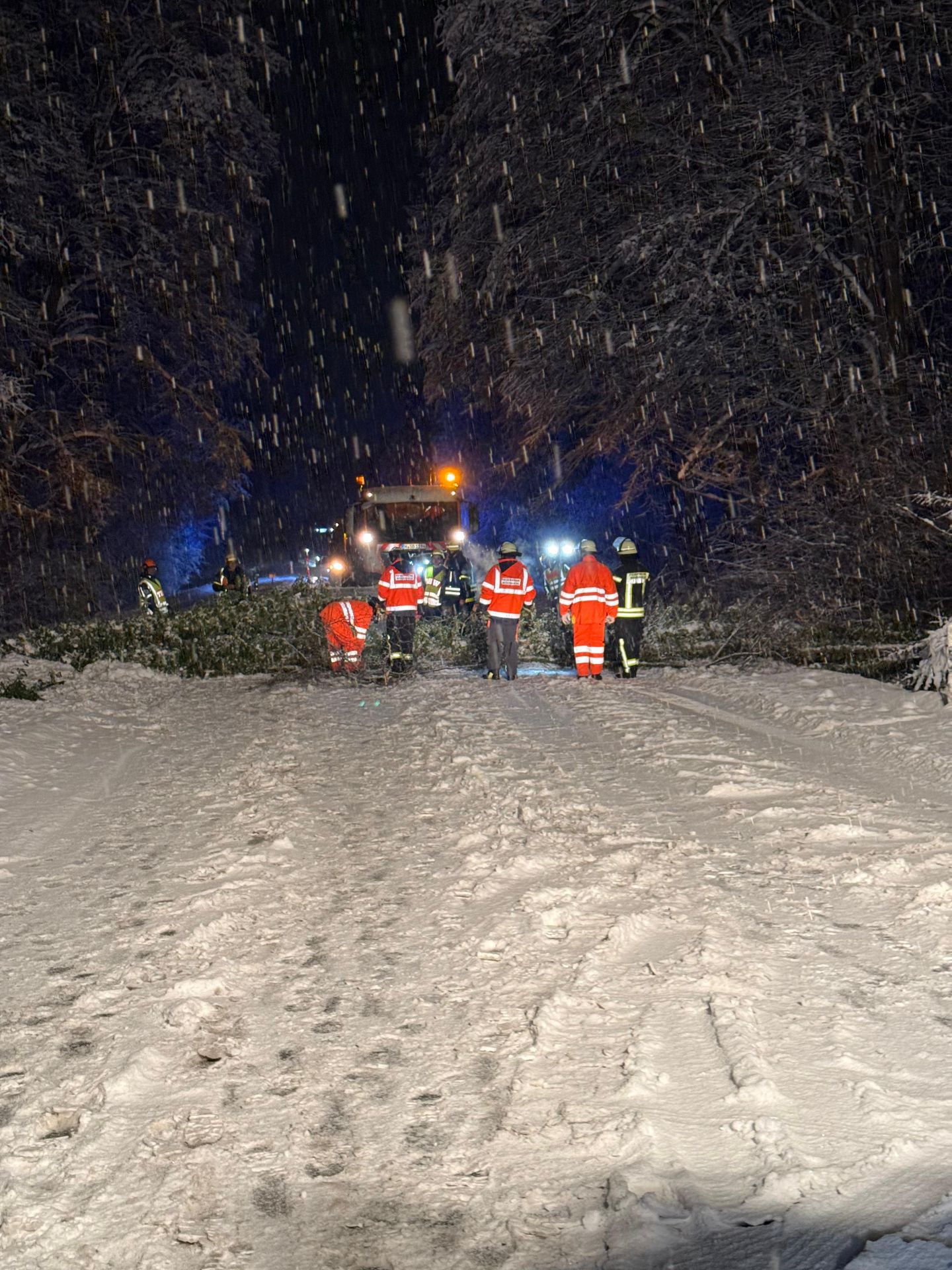Wie vorhergesagt wurde mit steigenden Temperaturen der Schnee zunehmend nasser und schwerer. Zahlreiche Bäume und Äste konnten der Last dann ab dem frühen Nachmittag nicht mehr Stand halten. Die Feuerwehren waren bis in den Nachmittag des 27. Januar mit der Beseitigung umgestürzter Bäume und abgebrochener Äste auf den Fahrbahnen im Landkreis sowie mit dem Entlasten von Bäumen, die zu stürzen drohten, beschäftigt. Teilweise mussten auch Straßen gesperrt werden. Durch umgestürzte Bäume auf Stromleitungen kam es auch zu Stromausfällen im Landkreis. Auch liegen gebliebene LKW sorgten immer wieder für Einsätze. Hier war auch das THW Lauf den ganzen Tag immer wieder im Einsatz.