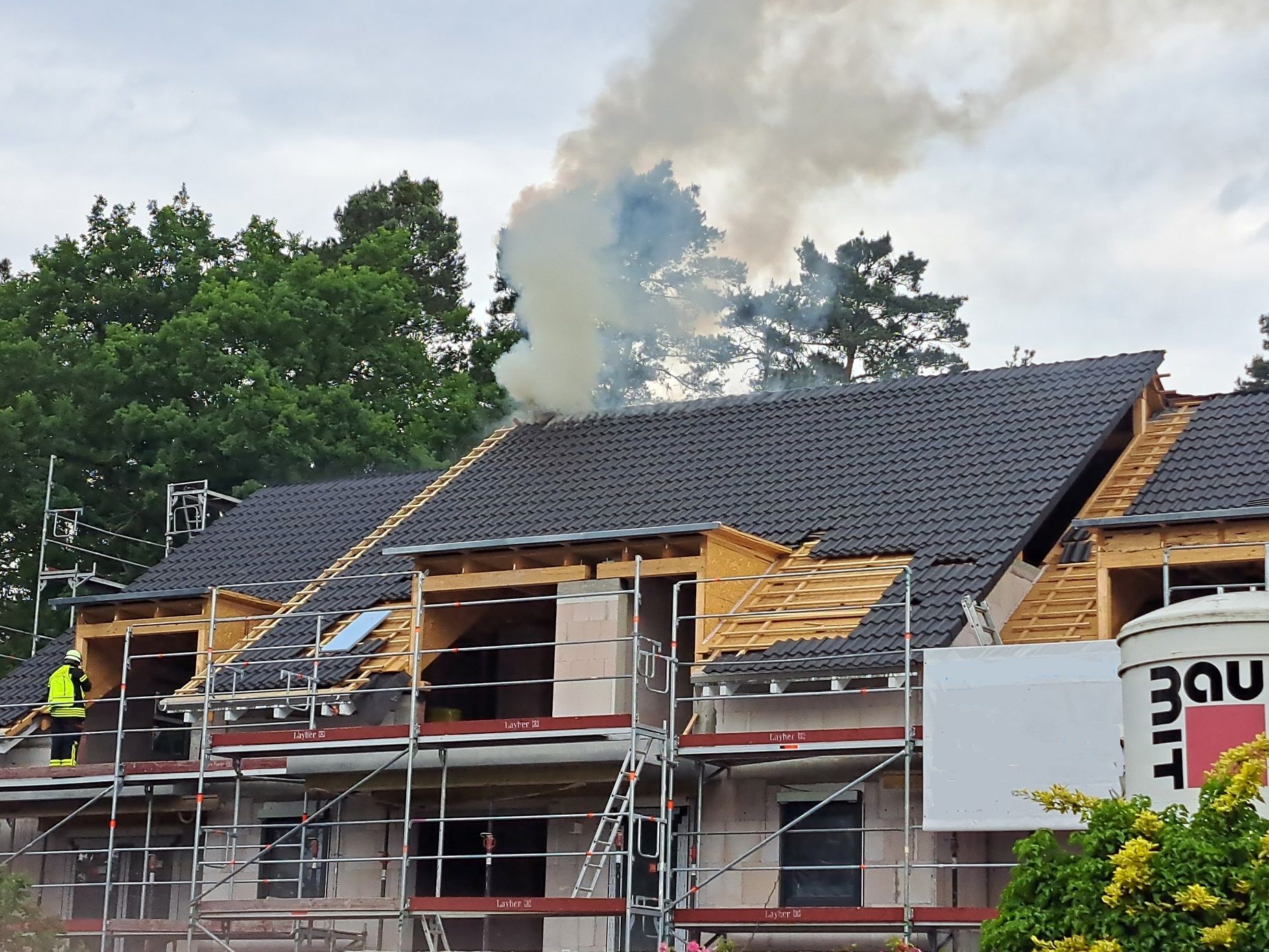 Feucht (DB 3) - Am 31. Mai wurde die Freiwillige Feuerwehr Markt Feucht um 17:50 Uhr zu einem Dachstuhlbrand in den Gugelhammerweg alarmiert.