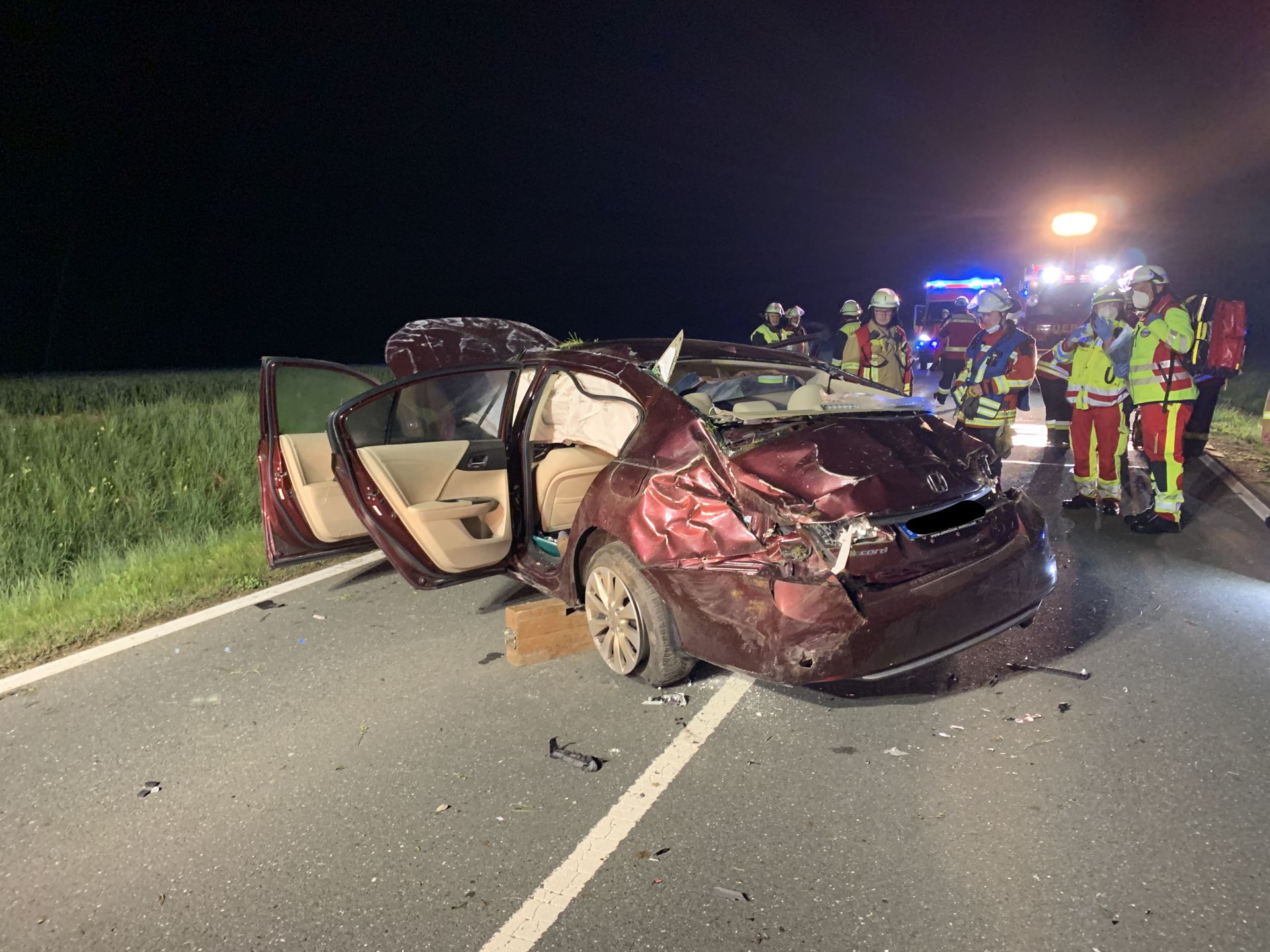 Neuhaus/Pegnitz (DB1) - In der Nacht von Freitag auf Samstag den 07. Mai 2022 wurden die Feuerwehren Neuhaus/Pegnitz und Königstein/Opf. um 3:30 Uhr auf die Staatsstrasse zwischen Krottensee und Königstein zu einem schweren Verkehrsunfall mit eingeklemmten Personen alarmiert.
