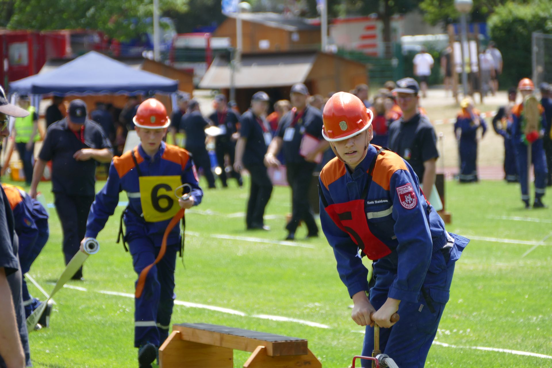 Der Einmarsch begann um 15:00 Uhr mit musikalischer Unterstützung durch die Stadtkapelle Röthenbach a.d. Pegnitz. Anschließend führten Landrat Armin Kroder, der stellvertretende Vorsitzende des Landesfeuerwehrverbandes Norbert Thiel und Landesjugendfeuerwehrwart Gerhard Barth durch die Ehrungen. Die ersten beiden Platzierungen, belegt durch die Gruppen, der JF Oberneukirchen I + II, qualifizierten sich für den Landesausscheid im September 2018 in Husum, Schleswig-Holstein.