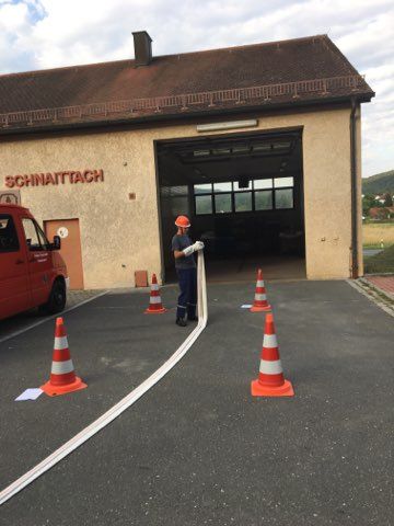 Schnaittach (DB2) - Am Donnerstag, 26.07.2018, war es endlich soweit. Nach 6 Wochen Vorbereitungszeit haben sich die Jugendlichen der Jugendfeuerwehren aus Schnaittach, Hedersdorf und Osternohe der Abnahme der Jugendflamme I in Schnaittach unterzogen.