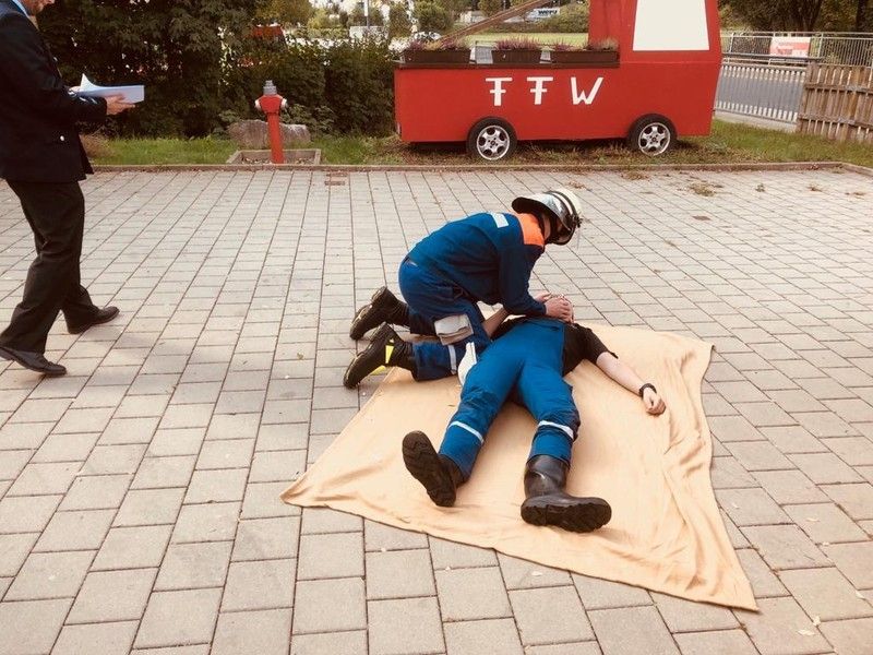 Bei dieser Aufgabe wurde den Jugendlichen eine Situation dargestellt, die den Wissenstand des Erste-Hilfe-Kurses entspricht. Mittels Losentscheid musste einer der Bereiche wie Überprüfung der lebenswichtigen Vitalfunktionen, Lagerung verletzter Personen oder Rettung verletzter Verkehrsteilnehmer gelöst werden.